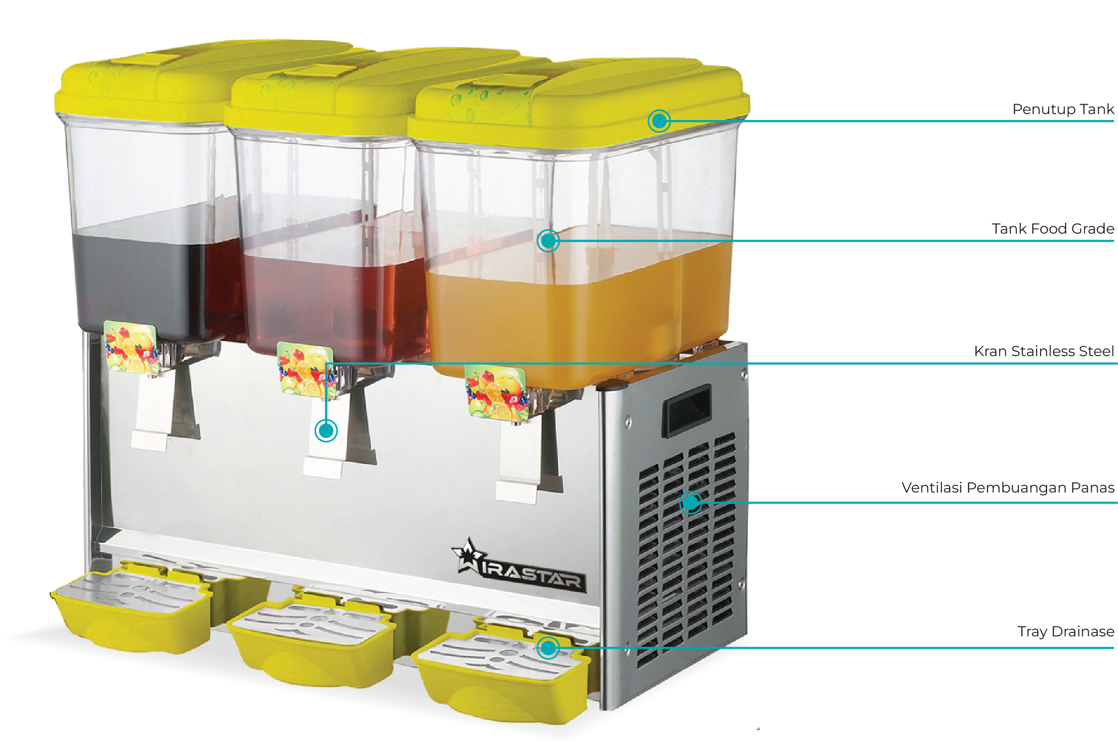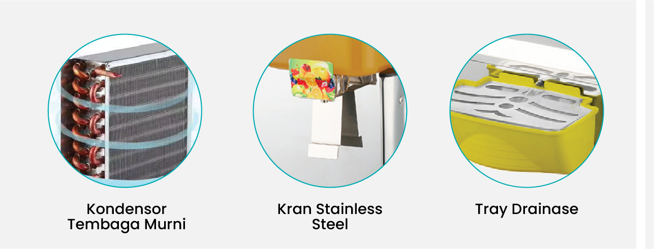 Juice Dispenser adalah mesin penyaji minuman dingin yang praktis, higienis, dan menarik untuk berbagai kebutuhan. Alat ini umum digunakan di restoran, hotel, kafe, hingga stand minuman karena mampu menjaga kesegaran. Selain itu, tampilannya yang profesional membuat minuman terlihat lebih menarik dan meningkatkan kepercayaan pelanggan.