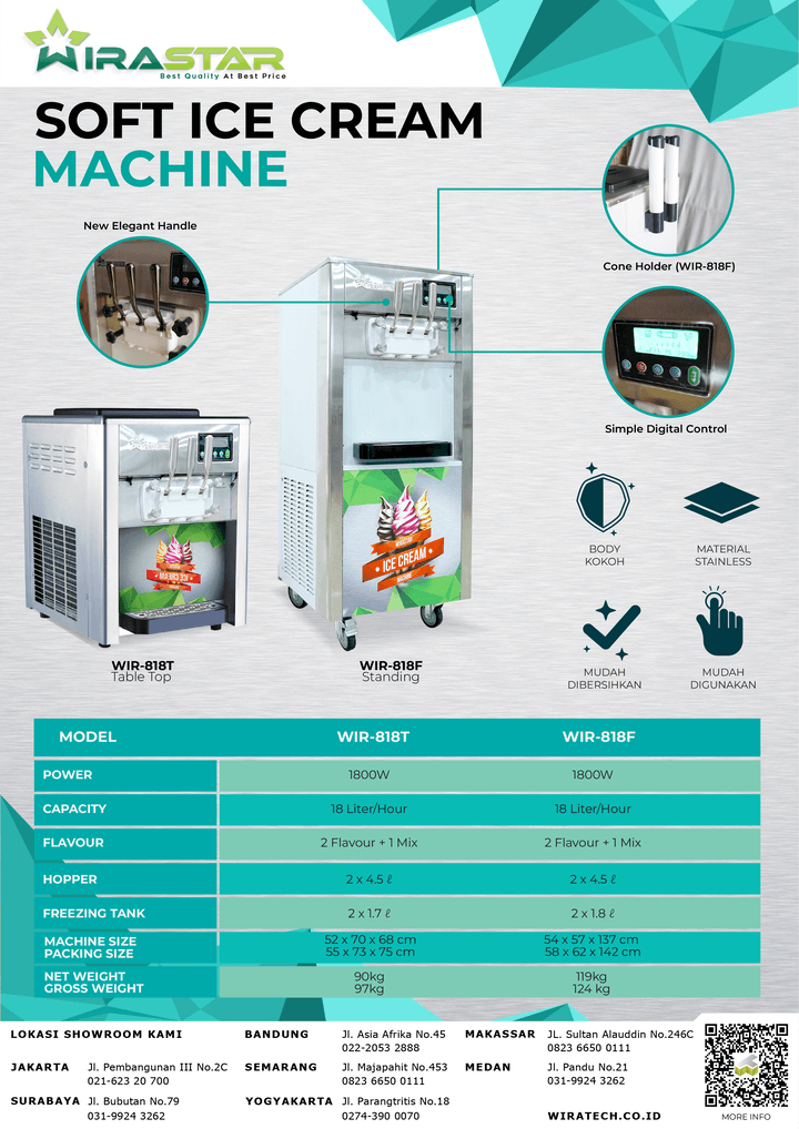 Mesin pembuat es krim impor dengan harga termurah dan bergaransi resmi. Bisa anda dapatkan hanya di WIRATECH. Alat ini biasa digunakan dalam bisnis ini, cafe, restoran, dan kuliner hotel.