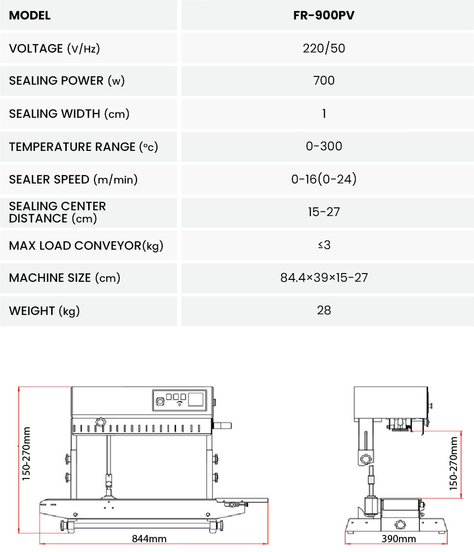 FR900PV Merupakan salah satu jenis mesin continuous sealer vertikal ekonomis di Wiratech. Mesin ini memang sengaja di buat untuk memenuhi para pebisnis pemula yang mempunyai buget terbatas namun menginginkan mesin kemasan sealer yang berkualitas. FR900PV hadir dengan balutan warna hitam berfinishing Glosy, dari sisi material mesin ini di buat menggunakan material Iron/Metal. Sehingga konstruksinya cukup kuat dan solid dan mampu bekerja mengemas ukuran besar sekalipun.