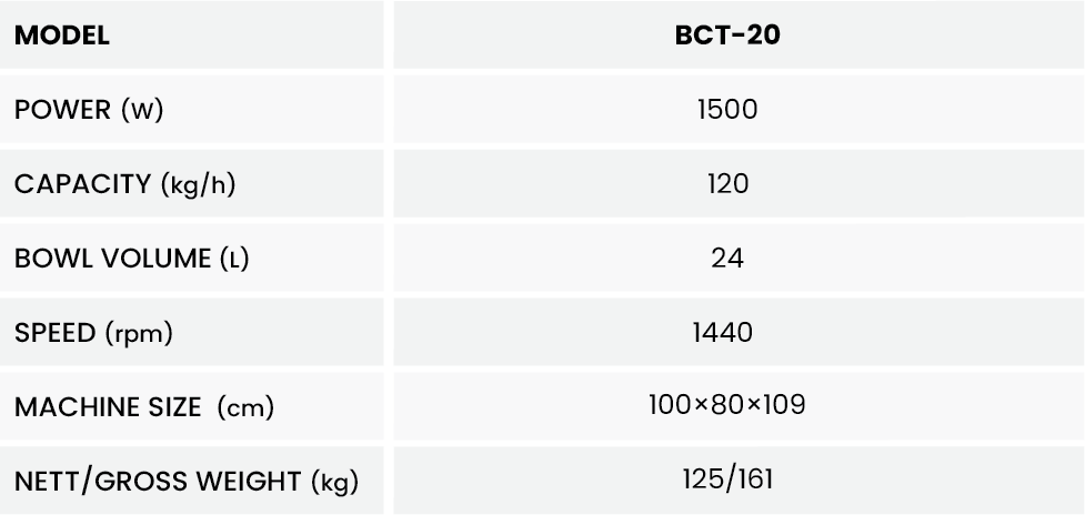 Bowl Cutter merupakan salah satu jenis mesin pemotong daging paling modern. Mesin ini mempunyai mesin motor listrik yang besar dengan daya putaran kuat. Mesin ini biasanya digunakan untuk membuat adonan bakso, sosis, dan olahan daging yang dihaluskan lainnya. Mesin ini dapat menampung dan menghaluskan daging dengan jumlah banyak.