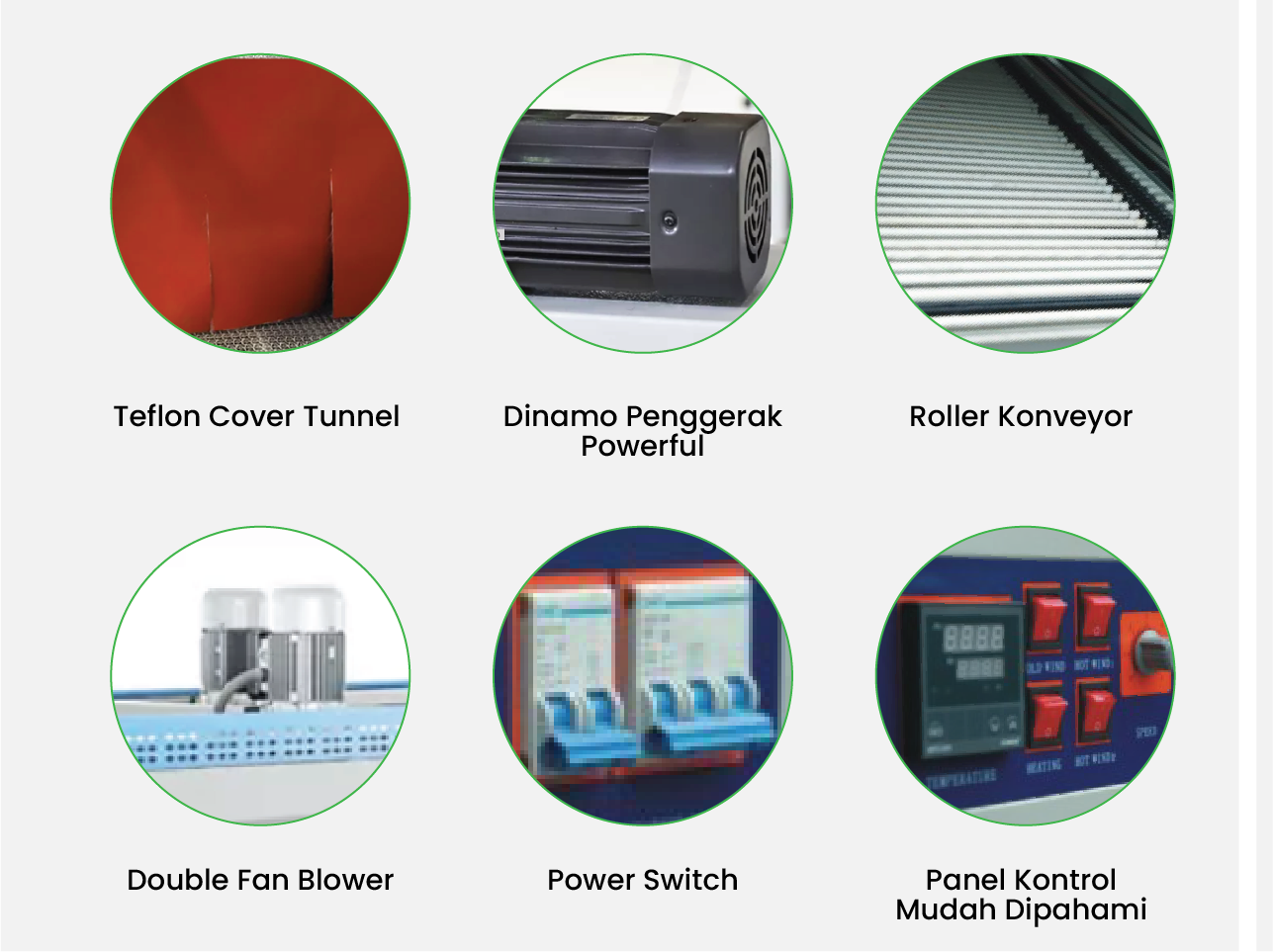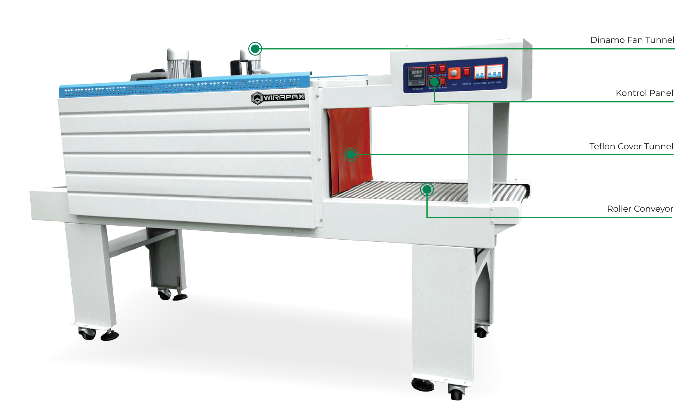 BS-5540 shrink machine dilengkapi dengan motor turbine yang kuat dan temperatur kontrol yang pintar. Mesin shrink heavy-duty ini memanaskan dan mensirkulasi udara yang dipanaskan di dalam sebuah ruang tertutup untuk tujuan menyusutkan plastic shrink disekitar produk atau kemasan untuk melindungi fisik dan untuk memperbaiki penampilan. Rangka berkonstruksi besi. Mesin ini juga dilengkapi dengan conveyor berjalan yang dapat diautur kecepatannya untuk memasukkan produk ke dalam mesin. Suhu udara juga dapat disesuaikan untuk mencapai efisiensi mesin yang optimal. Dapat digunakan dengan L-Sealers. Waktu pemanasan pertama yang cepat.Sangat cocok untuk semua jenis plastik shrink, terutama PE shrink.