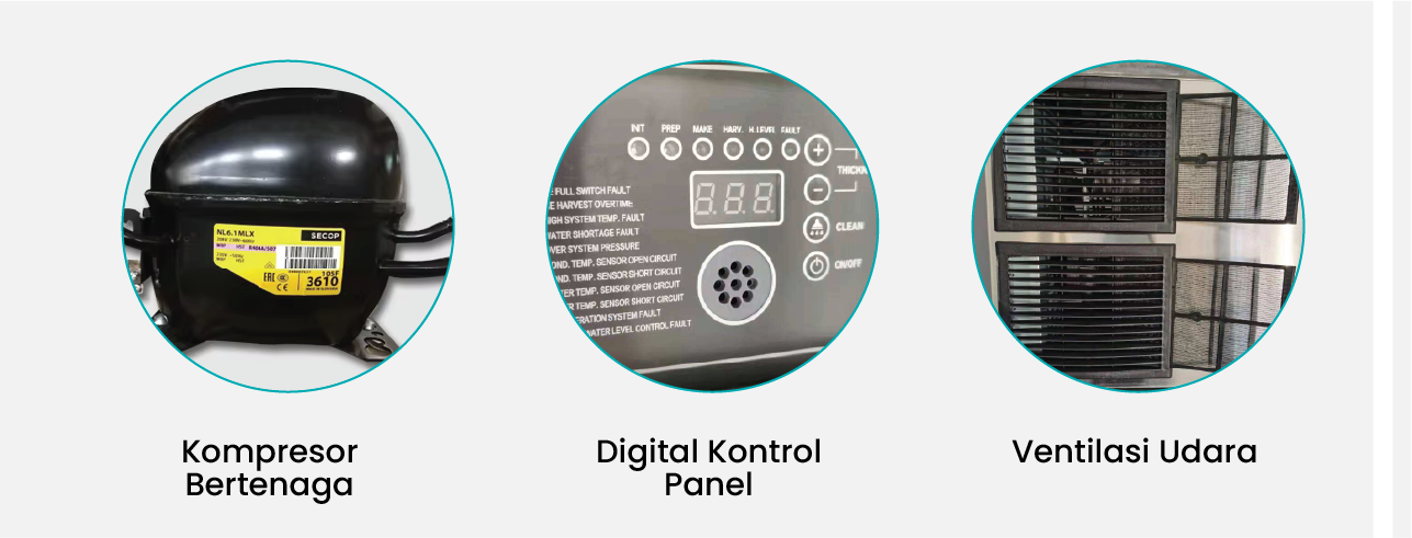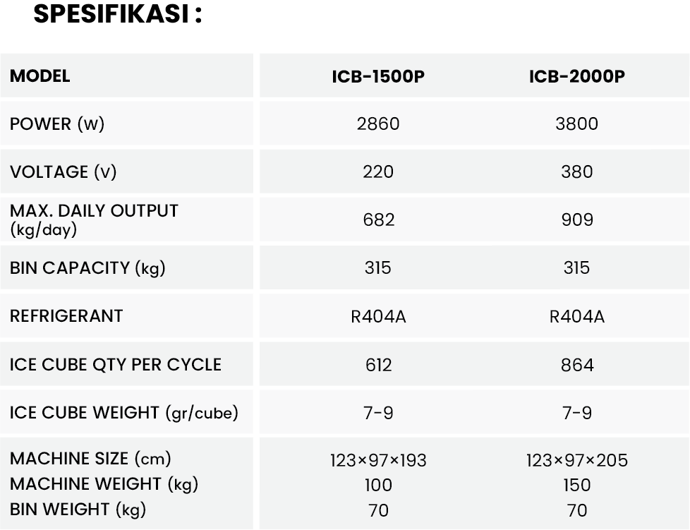 Mesin Es BatuICB-2000P sangat cocok di gunakan untuk bisnis Restoran, Cafe, Hotel dan Pabrik karena mampu membuat es batu (ice cube), ice flakes dalam jumlah besar, cepat dan berkualitas. Mesin ini merupakan pilihan yang sangat cocok bagi bisnis di bidang restoran, kafe, hotel, atau industri makanan dan minuman yang membutuhkan suplai es batu dalam jumlah besar.