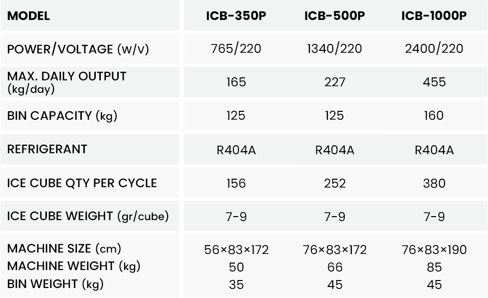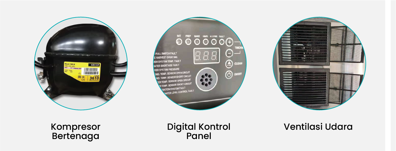 Mesin Ice Cube ICB-350P adalah pilihan terbaik bagi Anda yang ingin menghadirkan es batu kristal berkualitas tinggi secara konsisten dan efisien. Mesin es batu kristal ini dirancang khusus untuk kebutuhan bisnis berskala menengah hingga besar. Mesin ini menggabungkan teknologi pendingin mutakhir, desain modern, serta daya tahan tinggi yang siap mendukung performa bisnis Anda tanpa kompromi.