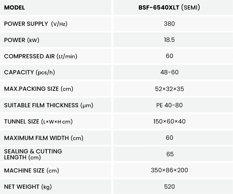Semi Auto Front Feed with Shrink Machine BSF-6540XLT