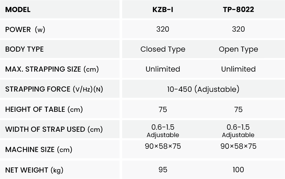Semi Auto Strapping Machine TP-8022 bergaransi resmi dengan harga termurah dan sparepart terlengkap. Semi Auto Strapping Machine TP-8022 ini bertenaga daya listrik 660 Watt. Serta strapping speed 1.5 second /strap, Volume (LxWxH) 895 x 565 x 720-870 mm. Juga memiliki bobot mesin 85 kg. Segera hubungi kami untuk jenis & tipe mesin yang anda cari.