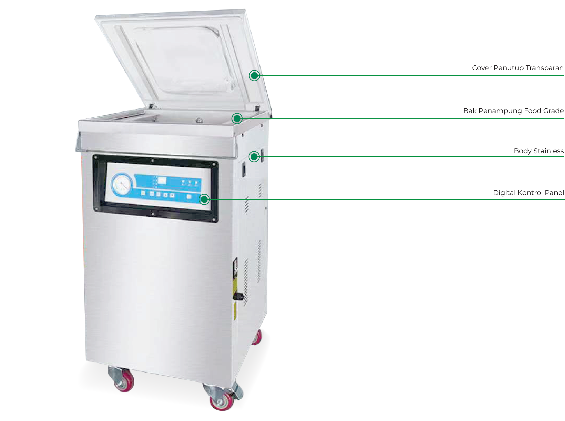 Vacuum Machine DZ-500X adalah perangkat vakum berkualitas tinggi yang dirancang untuk mengemas makanan dan produk dengan metode pengemasan hampa udara. Dengan teknologi canggih dan desain yang ergonomis, mesin ini mampu memperpanjang masa simpan produk dengan menghilangkan udara dari kemasan, sehingga mengurangi risiko oksidasi dan pertumbuhan mikroorganisme.