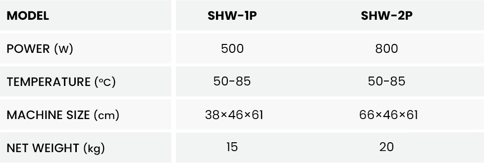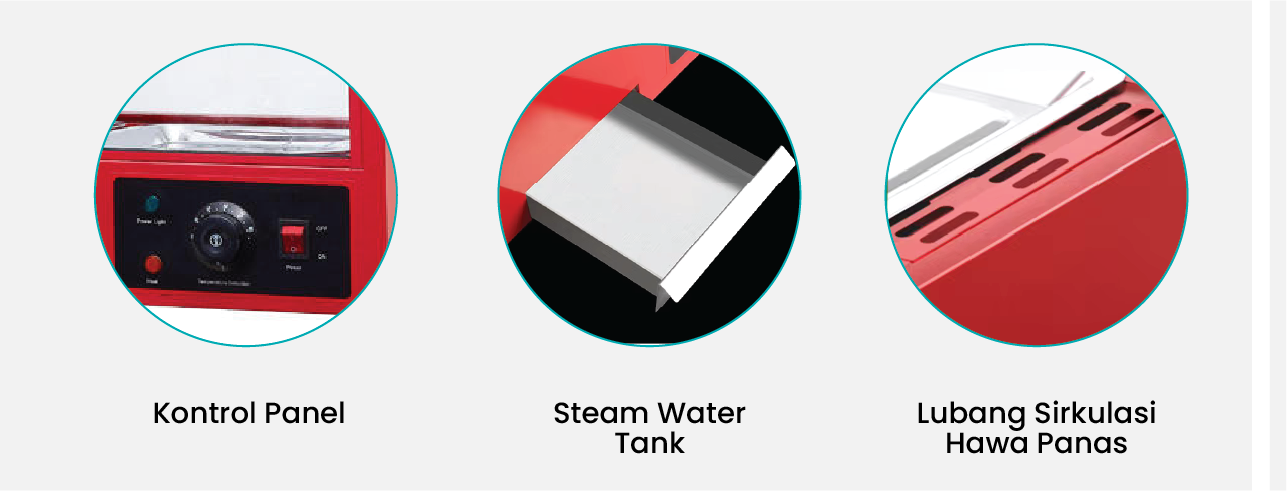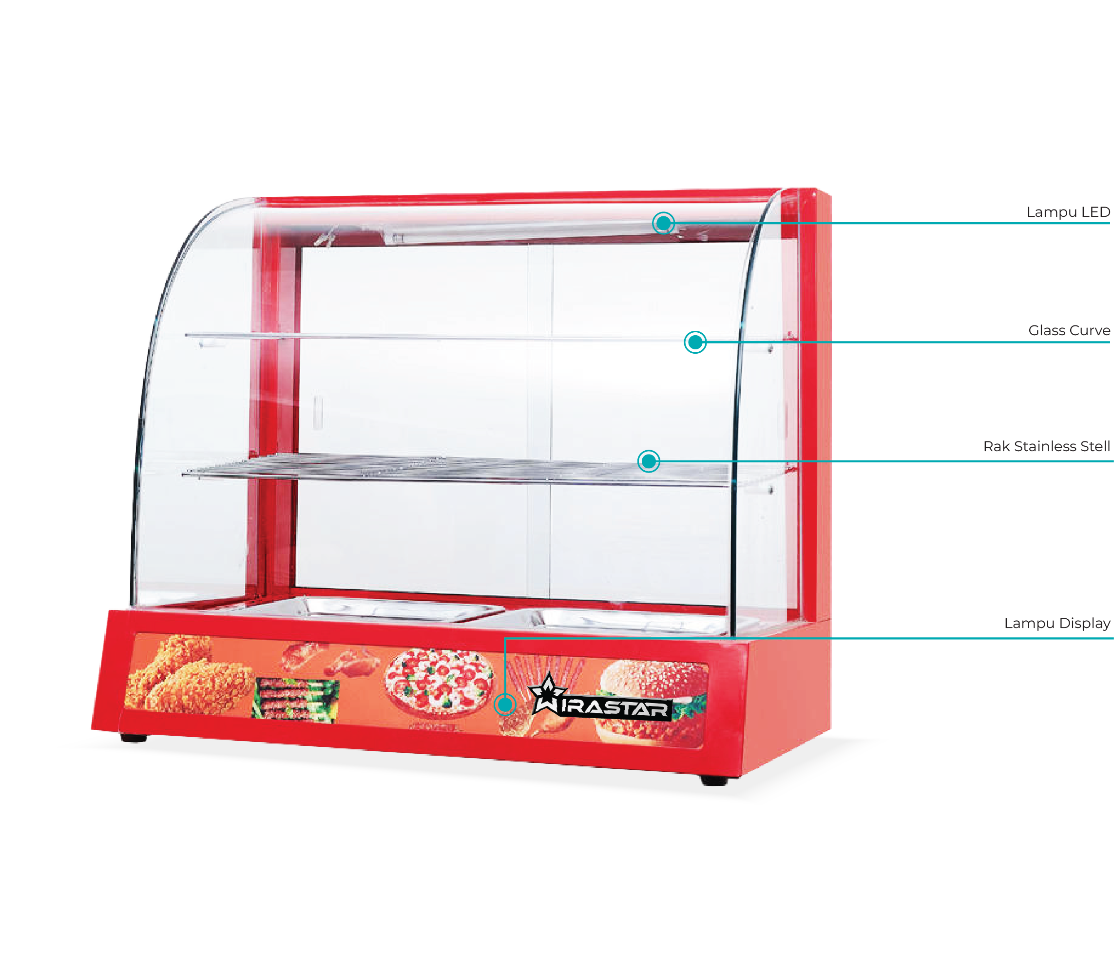 Display Warmer ini cocok untuk menjaga kehangatan produk dengan jumlah sedikit. Dengan berat yang lumayan ringan, mesin ini mudah untuk ditempatkan di mana saja. Selain memiliki pemanas bertenaga listrik, warming showcase juga mempunyai sistem sirkulasi yang baik. Sistem itulah yang menghasilkan suhu panas merata ke seluruh makanan.