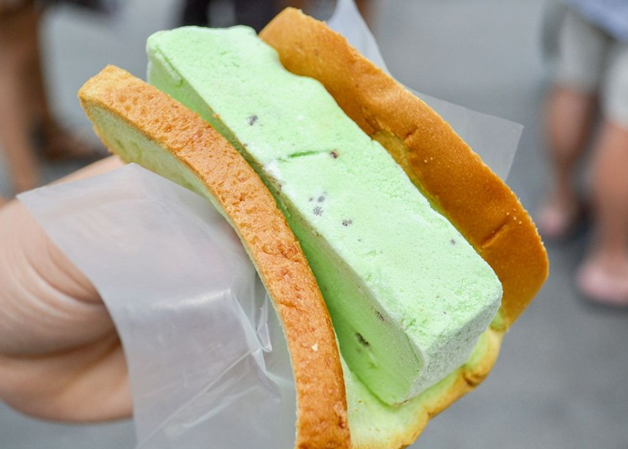 Ciri khas lainnya adalah variasi rasa yang sederhana namun autentik, seperti cokelat, vanila, stroberi, durian, hingga kacang hijau. Kombinasi rasa ini sering kali dibuat secara berlapis, sehingga tampilan es krim potong terlihat menarik ketika dipotong.
